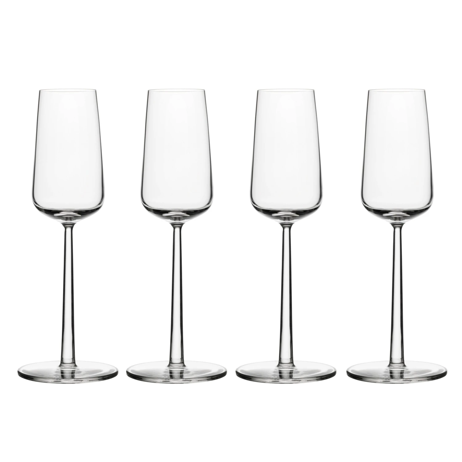 Este precioso set de cuatro copas de cava Essence de Iittala no puede faltar en tus fiestas y celebraciones. Las copas de champagne pertenecen a la popular cristalería Essence, diseñada por Alfredo Häberli en el año 2001 y también puedes encontrar en la colección copas de vino y cerveza, vaso de agua y botella de cristal. La serie Essence expresa un sentido de equilibrio y se caracteriza por su forma recta y pie alargado que le da elegancia a la copa. ¡Disfruta de un buen champagne o cava con estas excepcionales copas!